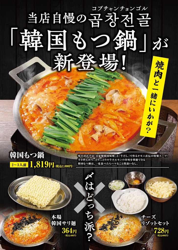 韓国もつ鍋 2~3人前 1,819円!(税込2,000円)